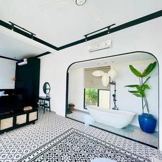 This stunning terrace is in Vietnam and uses tiles with a floral theme with customized tints. We got excellent feedback, and she is pretty happy!
